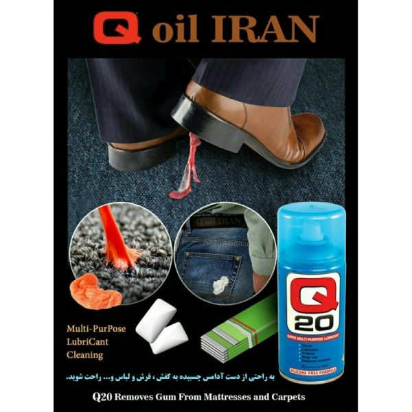 محصول فوق اسپری چند منظوره Q20 نام دارد که با عملکرد تمیز کنندگی و روان کنندگی و یک مسئله بسیار مهم وآن جایگزینی خود بجای رطوبت و از بین بردن رطوبت در سیستمهای وسائل نقلیه و ماشینهای سنگین ، موتور سیکلت ، کشتی ، قایق موتوری ، و موتورهای الکتریکی جایگاه منحصر به فردی را در بازار جهانی به خود اختصاص داده است .اسپری(Q20) در مناطقی که آب و هوای بسیار سخت رطوبتی دارند و با بارش باران و رگبارهای شدید رو برو هستند نیز طرفداران بسیاری دارد و محافظ در برابر زنگ زدگی می باشد . همچنین جهت پاک کننده قیر از روی بدنه خودرو ،پاک کردن جوهر از روی لباسهای چرمی و پاک کردن آدامس از سطح فرش و موکت استفاده می شود .اسپری (Q20 ) فاقد سیلیکون می باشد و این خاصیت مهم از آلودگی محیط زیست جلو گیری میکند .به همین سبب این محصول همه کاره مورد توجه مصرف کنندگان آن در منازل مسکونی و گاراژ ها و کارگاه ها نیز قرار گرفته است .