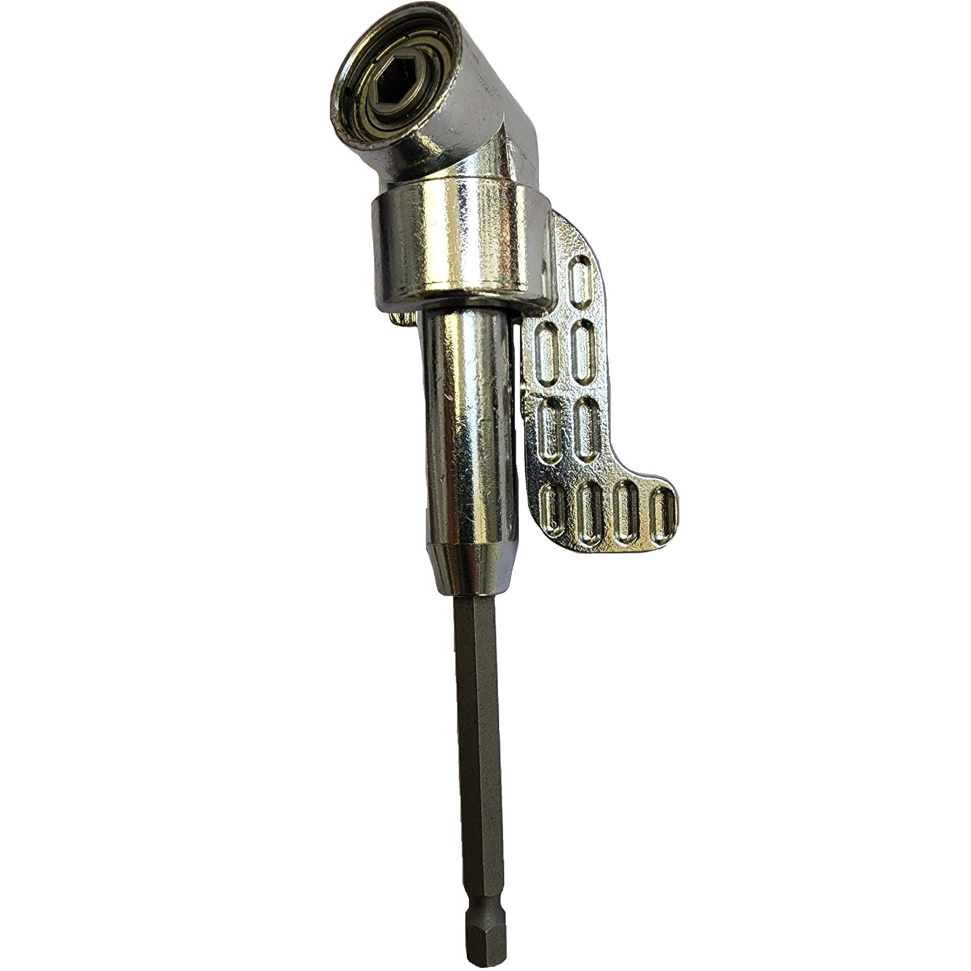 رابط چپقی دریل را برای سوراخکاری و بستن پیچ با دریل پیچ گوشتی شارژی در مکان هایی که غیر قابل دسترس هستند و امکان سوراخکاری و بستن پیچ را به شما ندهند را به شما می دهد. رابط 90 درجه دریل و یا همان چپقی دریل از آن دسته لوازم جانبی ابزار می باشد که تقریبا هر تکنسین یا استفاده کننده از دریل و دریل شارژی ها به آن نیاز دارد. چپقی 90 درجه برای اتصال از پایه 1.4 اینچ بهره می برد و امکان اتصال همه بیت های 1.4 را دارد.