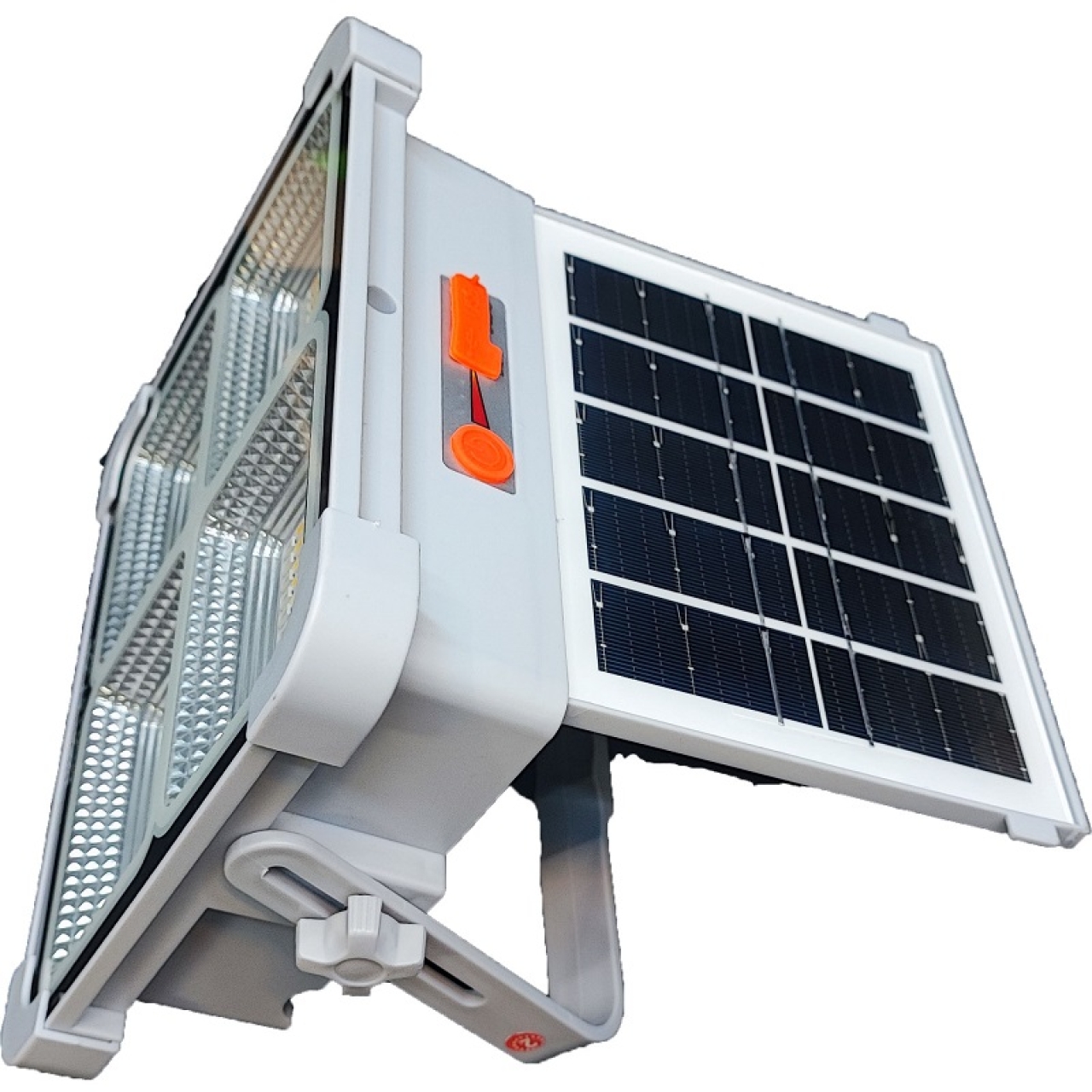 پروژکتور شارژی خورشیدی 240 ال ای دی | پاوربانک دار دارای 6 باتری یکی از کاربردیترین و مدرنترین محصولات روشنایی در بازار است که با بهرهگیری از تکنولوژی روز، راهحلی ایدهآل برای روشنایی فضاهای مختلف ارائه میدهد. این پروژکتور، به دلیل ویژگیهای خاص و قابلیتهای فنی پیشرفته، برای مصارف گوناگون از جمله کمپینگ، باغ، محیطهای کارگاهی و حتی روشنایی اضطراری بسیار مناسب است. مشخصات فنی پروژکتور LED خورشیدی شارژی قدرت نوردهی: این پروژکتور شارژی خورشیدی مجهز به لامپهای LED با شدت روشنایی بالاست که این پروژکتور شارژی قادر به تولید نوری است که به راحتی فضای بزرگی را در حدود 80 متر مربع پوشش میدهد. پنل خورشیدی بازشونده: این محصول به پنل خورشیدی بازشونده مجهز است که انرژی خورشید را به برق تبدیل میکند. پنل دارای بازده انرژی بالایی است و حتی در روزهای نیمهابری نیز قادر به شارژ باتری داخلی دستگاه است. باتری داخلی: دارای 6 عدد باتری داخلی لیتیومیون با ظرفیت 1200 میلیآمپر ساعت(مجموعا 7200 میلی آمپر) ، امکان استفاده مداوم از پروژکتور را تا 10 ساعت در حالت نوردهی متوسط فراهم میکند. همچنین، شارژ کامل باتری با استفاده از پنل خورشیدی حدود 6 تا 8 ساعت زمان میبرد. درگاه شارژ USB: پروژکتور مجهز به یک درگاه USB برای شارژ دستگاههای الکترونیکی مانند گوشی موبایل، تبلت یا چراغهای دیگر است. این قابلیت برای مواقع اضطراری یا کمپینگ بسیار کاربردی است. جنس بدنه: بدنه این پروژکتور از پلاستیک فشرده ساخته شده که علاوه بر وزن سبک، مقاومت بالایی در برابر ضربه و شرایط آبوهوایی مختلف دارد. این محصول همچنین دارای استاندارد IP65 است که محصول را در برابر نفوذ گردوغبار و پاشش آب مقاوم میکند. تنظیم شدت نور: این دستگاه دارای چندین حالت نوردهی (مهتابی، آفتابی، نچرال با نور زیاد(هم زمان مهتابی و آفتابی) ،نچرال با نور کم و چشمکزن پلیسی آبی و قرمز) است که با استفاده از دکمه تعبیه شده بر روی پروژکتور میتوان به راحتی آنها را تنظیم کرد. زاویه پخش نور: این پروژکتور زاویه پخش نور 120 درجه دارد که نوردهی گستردهای را ارائه میدهد و نیاز به چندین منبع نور را کاهش میدهد. از ویژگی های برجسته دیگر این پروژکتور شارژ چندمنظوره است که علاوه بر پنل خورشیدی، امکان شارژ باتری از طریق برق شهری یا پاوربانک نیز وجود دارد که انعطافپذیری بیشتری را برای کاربران فراهم میکند. همچنین وزن سبک، قابلیت حمل آسان و وجود دسته نگهدارنده، استفاده از این محصول را در سفر و کمپینگ بسیار ساده و کاربردی میکند.
